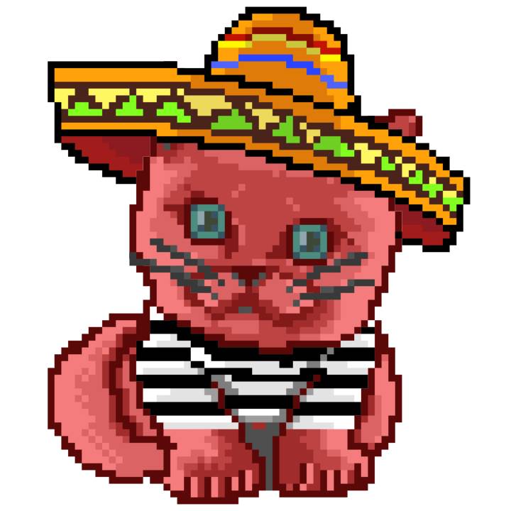 | Ashy Flashy Cat #1467 | 1027 | Pink | Sombrero | Handlebar Mustache | Wasket | View Image | View CatPage | View Opensea open_in_new |