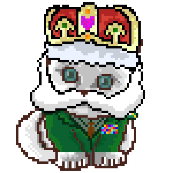 | Ashy Flashy Cat #77 | 642 | Turquoise | Crown | Victorian beard | No Uniform | View Image | View CatPage | View Opensea open_in_new |