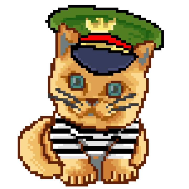 | Ashy Flashy Cat #1484 | 516 | Orange | Beret | Cat Mustache | Jail Top | View Image | View CatPage | View Opensea open_in_new |